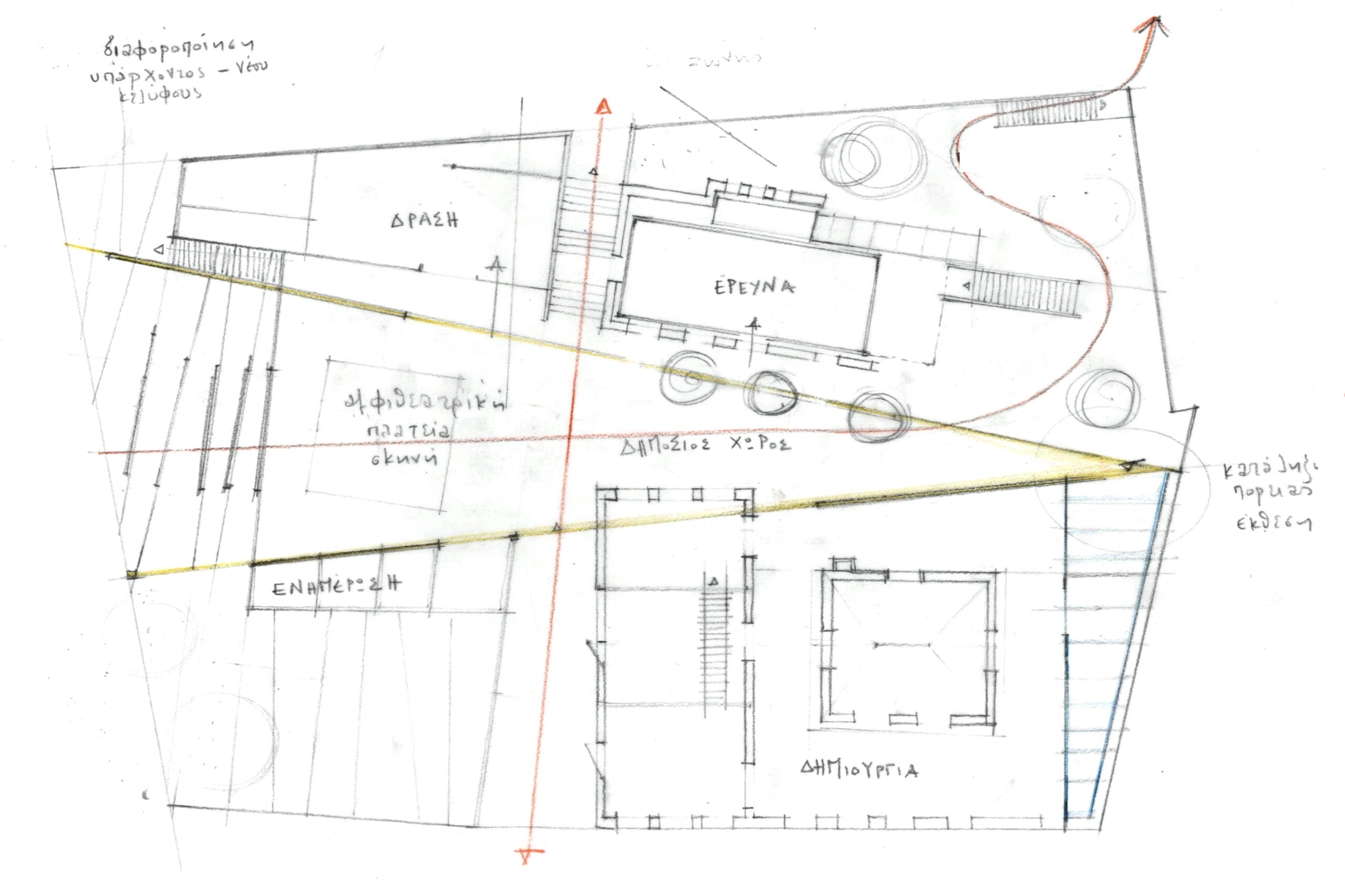 Plaka is a distinct part of the city, differentiated from the rest by its history, urban fabric, and architecture. Following a study of the area’s characteristics, a proposal is made for the restoration, reuse, and extension of two abandoned buildings on a plot that today remains closed and inaccessible to visitors.