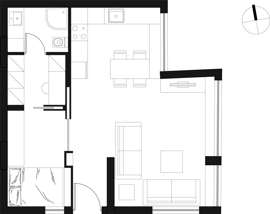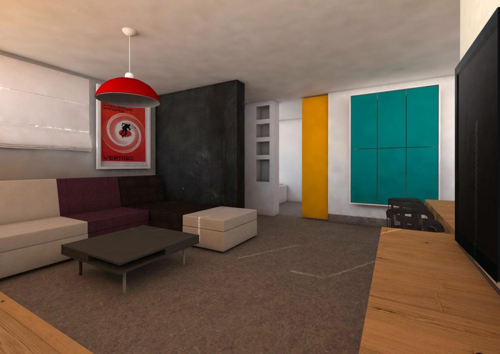 This project aimed to transform a semi-basement storage space into a functional living area. Within 57 m², all the main dwelling functions are accommodated. The layout is organized into two zones: a private area, comprising the bedroom, dressing room, and bathroom, and a living area that includes the living room, dining room, and kitchen.